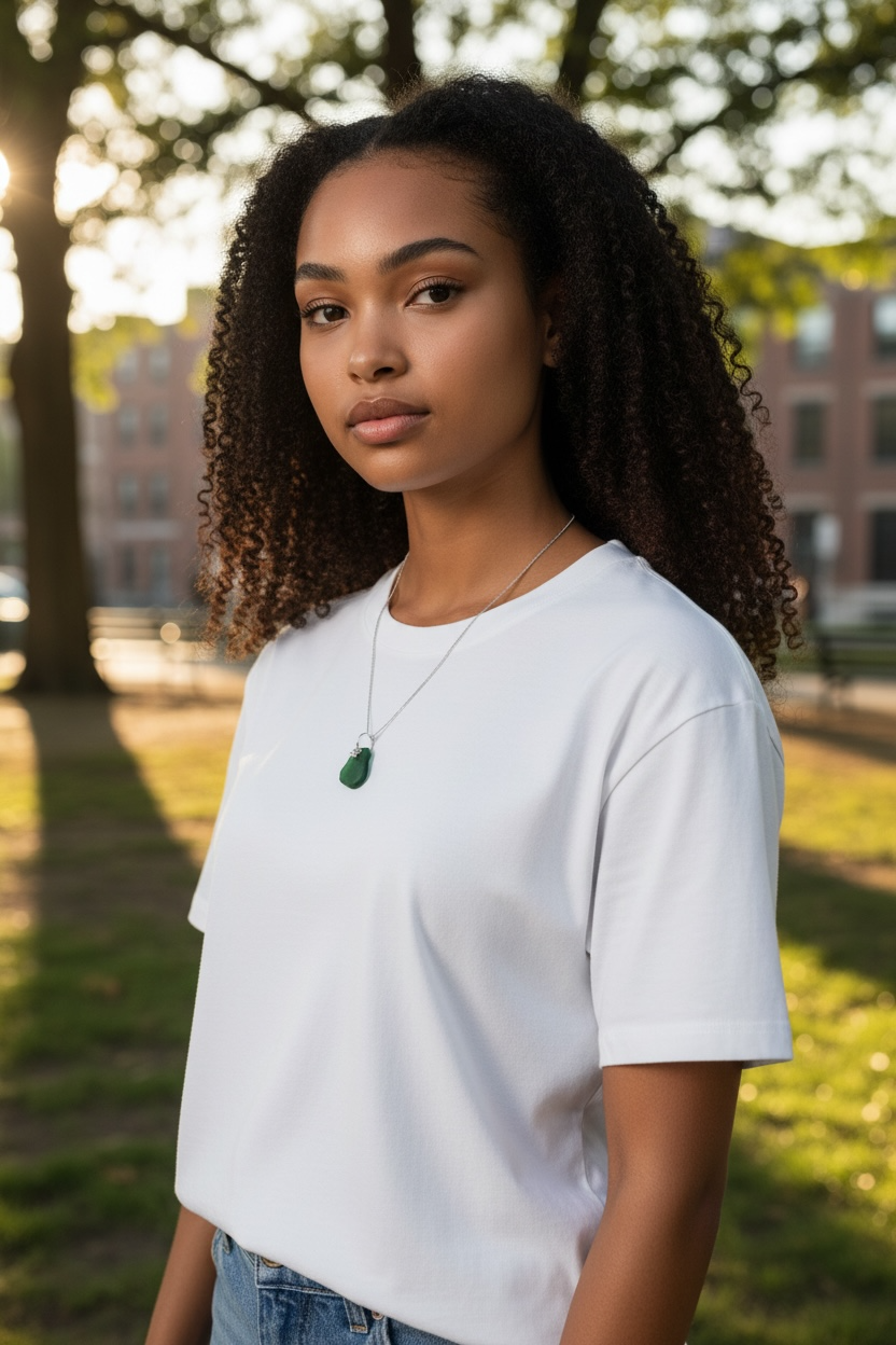 Silverhalsband med strandglas. Halsband med vackert strandglas från Ven. Halsbandet är handgjort, glaset plockat på Ven och borrat för hand. Hänget är grönt och har en liten berlock i form av en stjärna. Mått: hänget ca 2 x 1,7 cm, kedjan 40 cm. Sterling silver S925.